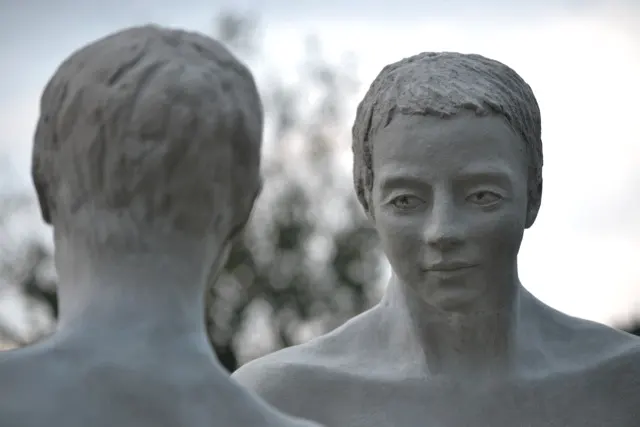 Cette sculpture évoque tous les rôles et tous les costumes que nous devons porter dans la vie, notre personne est composée des autres et du regard des autres et notre vie consiste à chercher qui nous sommes vraiment.