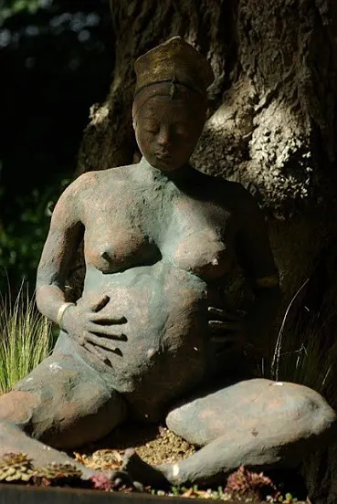 cette sculpture est d'abord un hommage aux femmes qui accouchent et elèvent leurs enfants dans les pires conditions... avec rien mais tout leur amour c'est aussi un hommage à notre terre dont nous sommes les enfants, souvent indignes de l'etre...